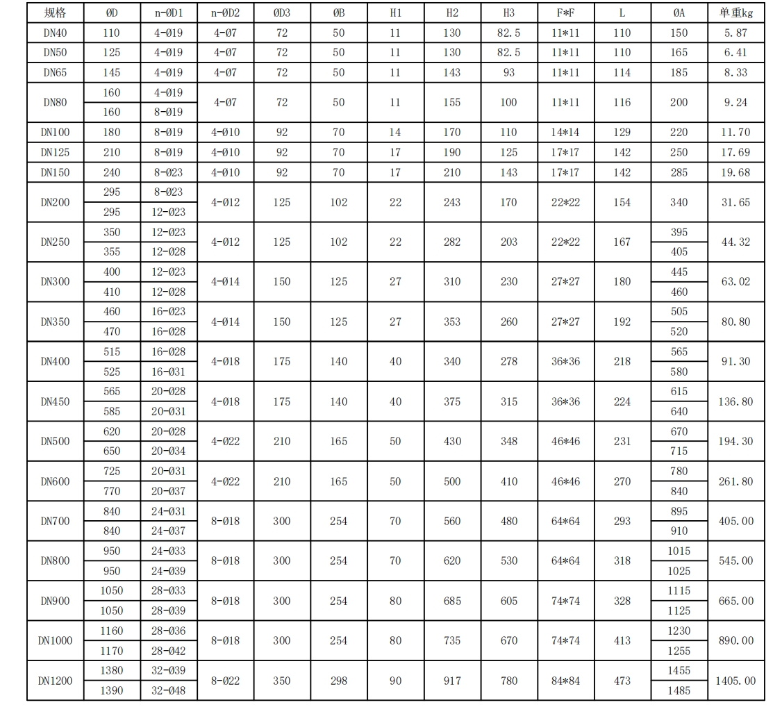 規(guī)格:DN40-DN1200