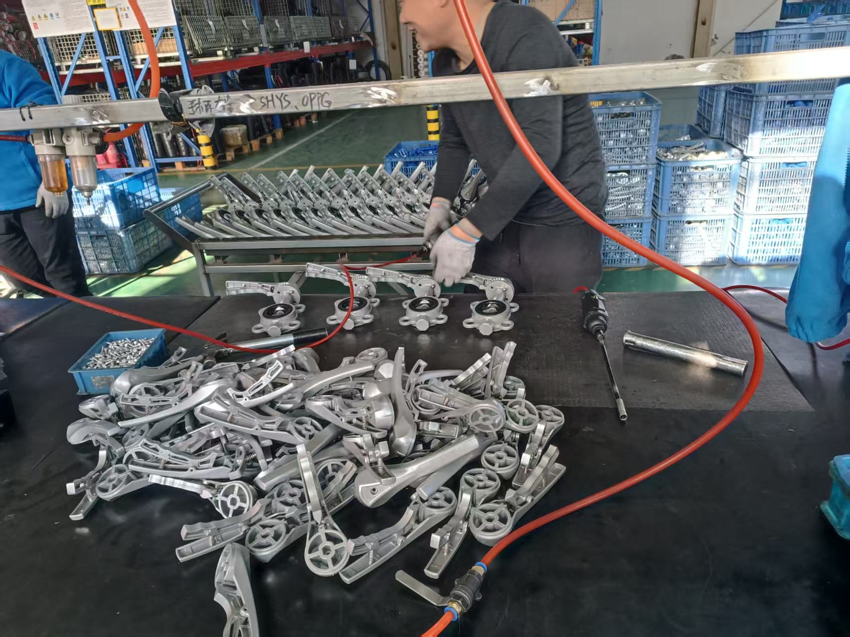 目前,我們正在組裝DN40對(duì)夾式手柄蝶閥并進(jìn)行包裝。