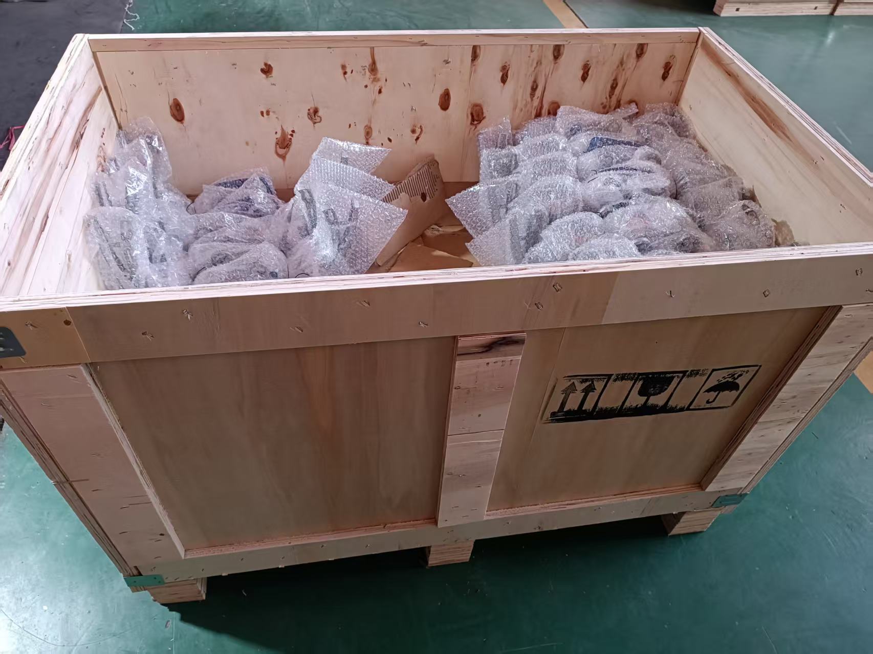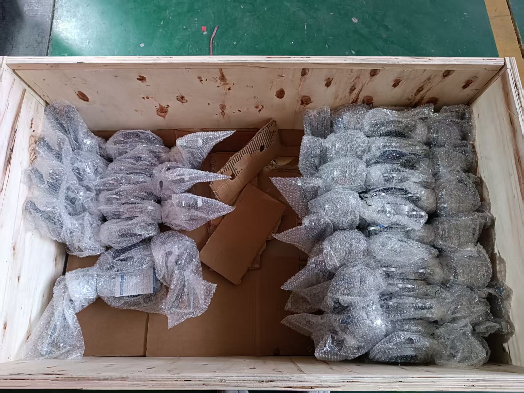隨后對(duì)每臺(tái)蝶閥進(jìn)行壓力測(cè)試,清潔擦拭干凈后用氣泡袋包裝,再裝入木箱。